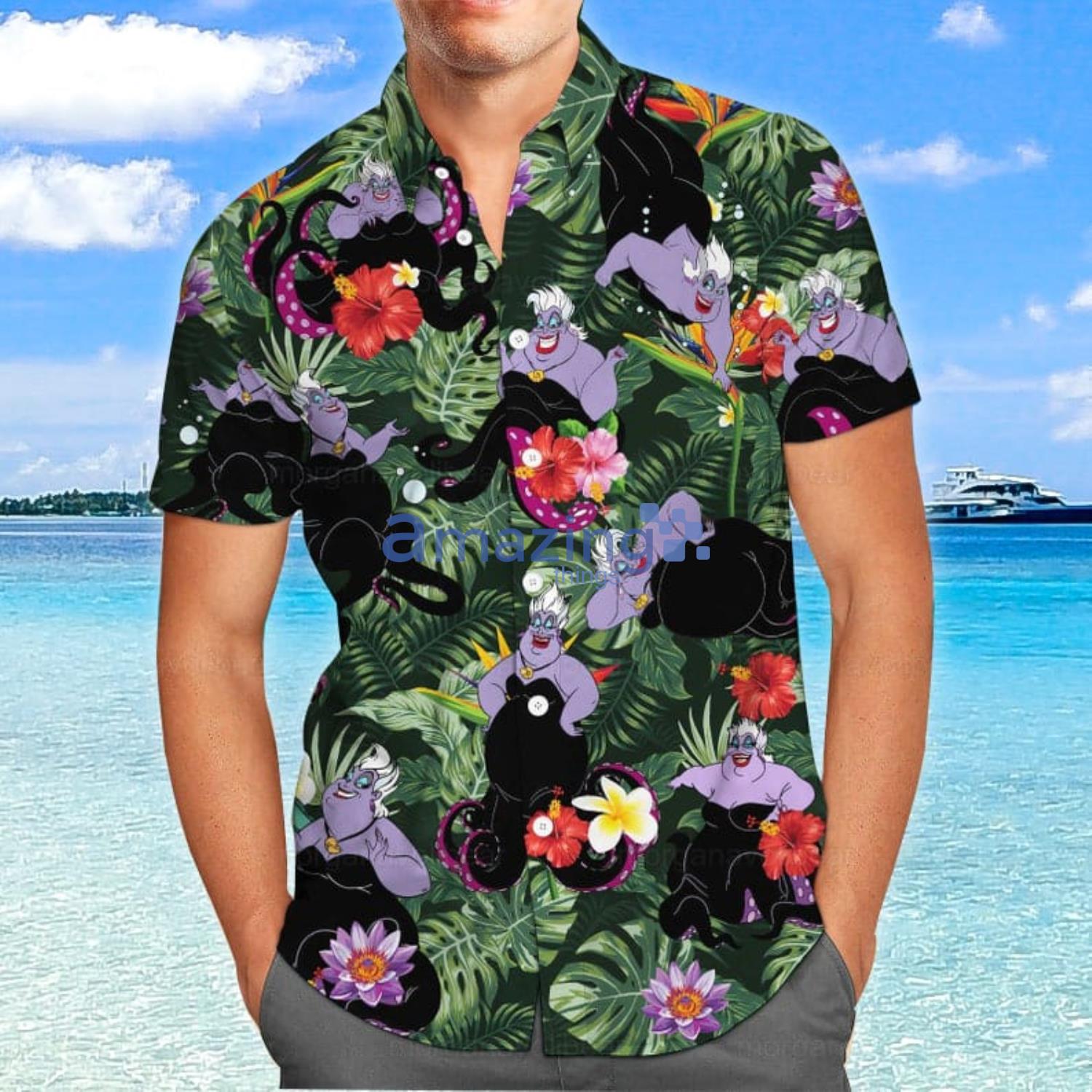 This design is available in a combo Hawaiian shirt & shorts. You can also get it separate. The default option is only one shirt or one pair of shorts. You have chosen a combo to get them both. This combo Ursula Shirt Ursula Hawaiian Shirt Disney Tropical Hawaiian And Shorts is perfect to go to the beach. Get yours now or make a great gift.