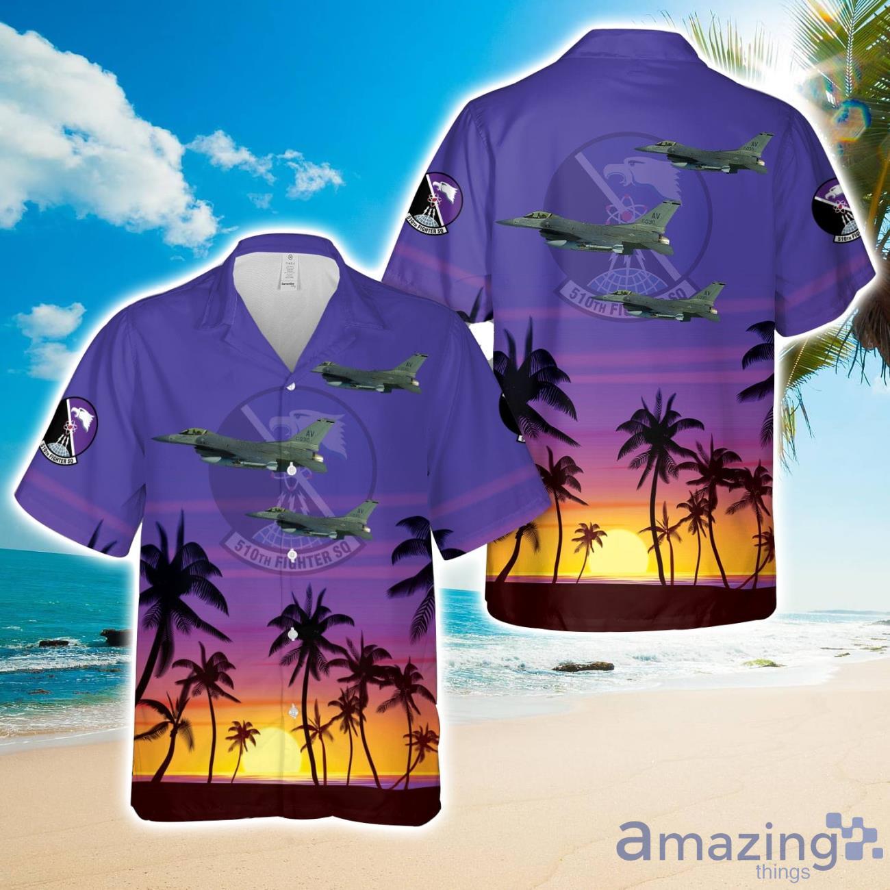 US Air Force 510th Fighter Squadron F-16C Hawaiian Shirt Beach Shirt For Men Women Details: