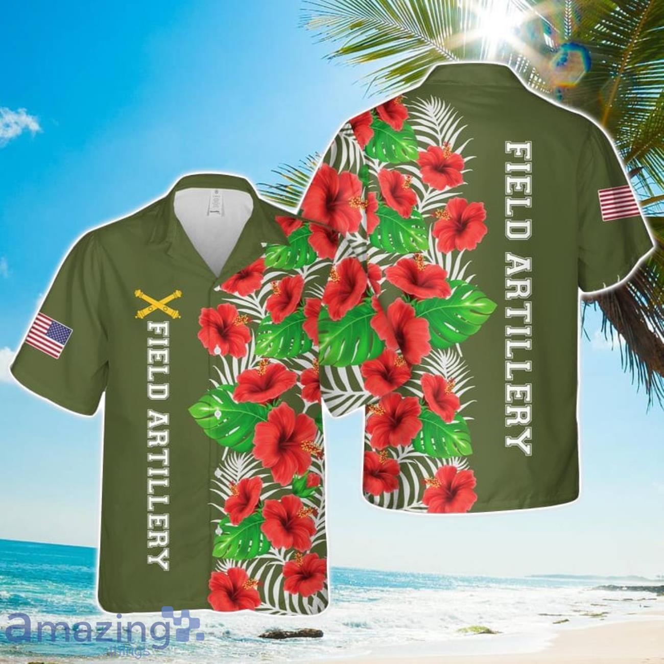 US Army Field Artillery Branch Badge Aloha Hawaiian Shirt US Army Beach Shirt Gift Details: