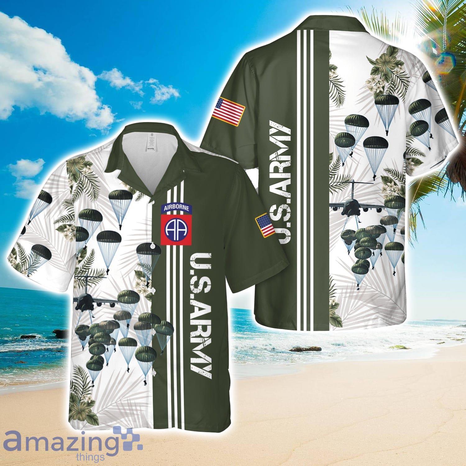 US Army Paratroopers With The 82nd Airborne Division Parachute Tropical Hawaiian Shirt US Army Gift Details:
