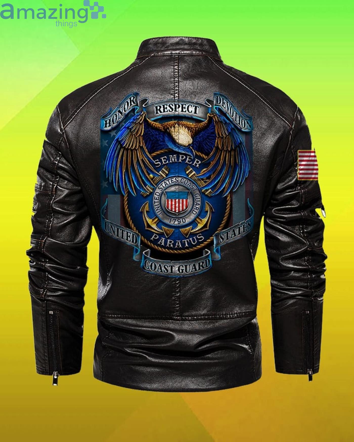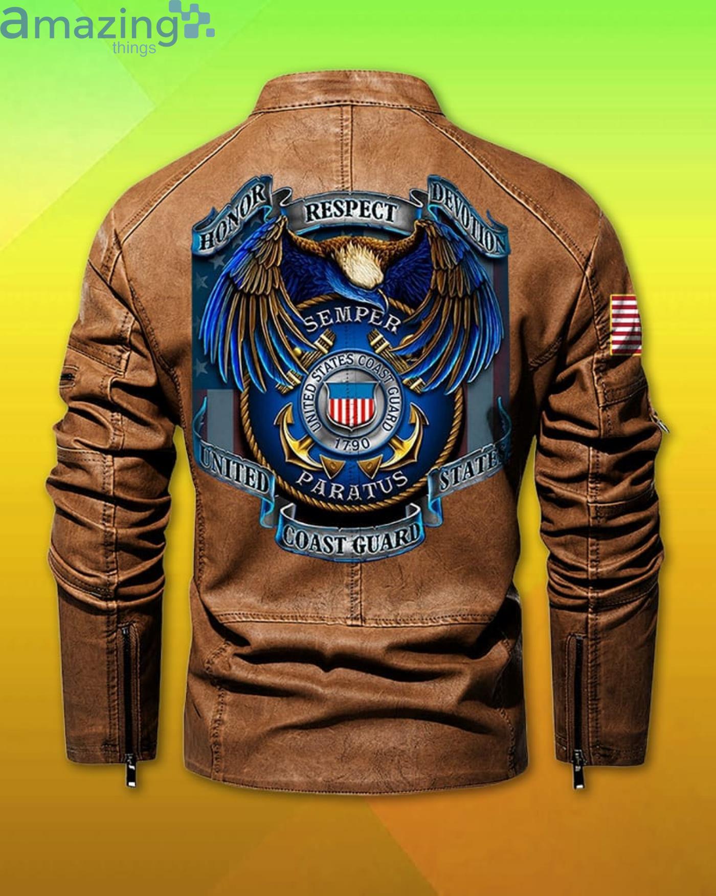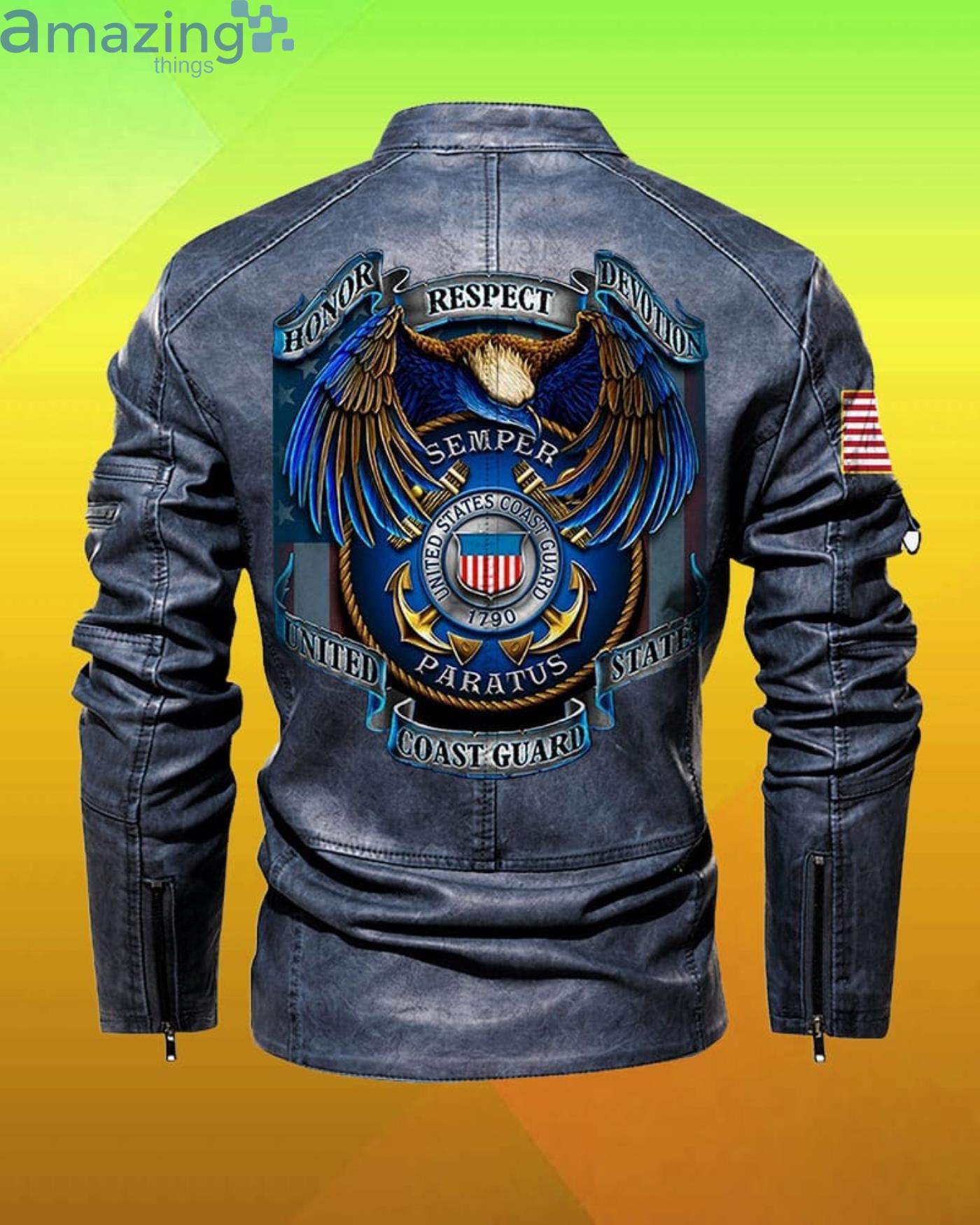 Some of the Us Coast Guard Honor Respect Devotion Custom Name Collar Leather Jacket photos