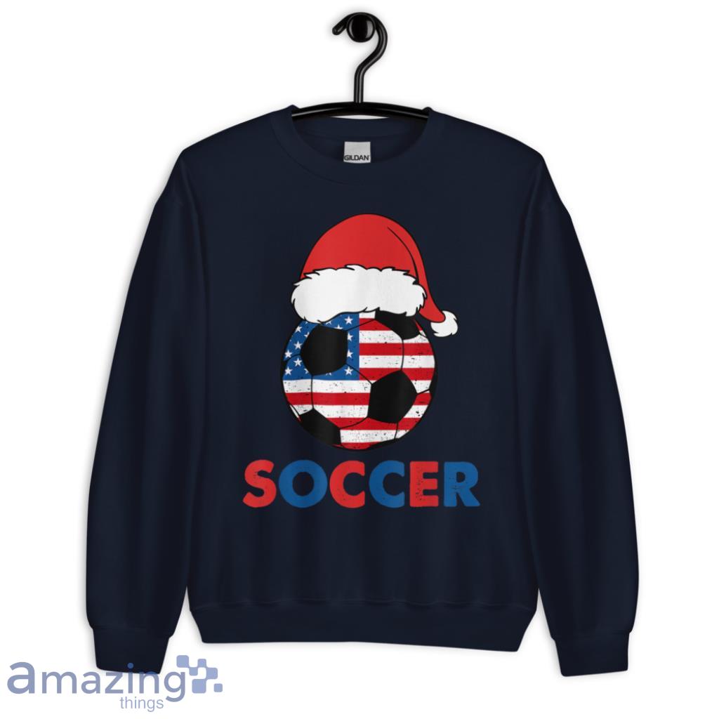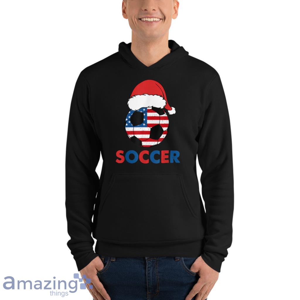 USA Flag Hat Santa For Soccer Lover Christmas T-Shirt Details