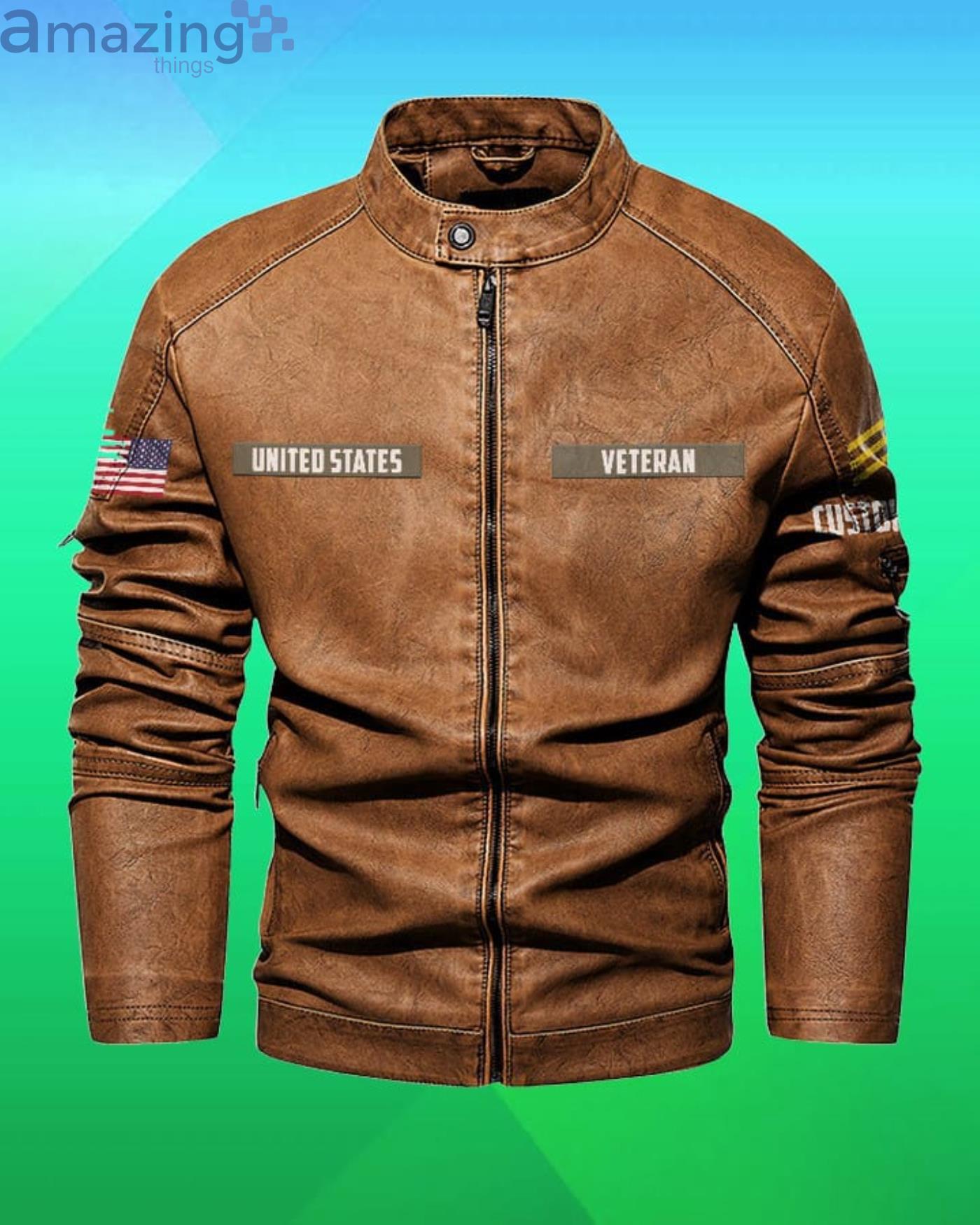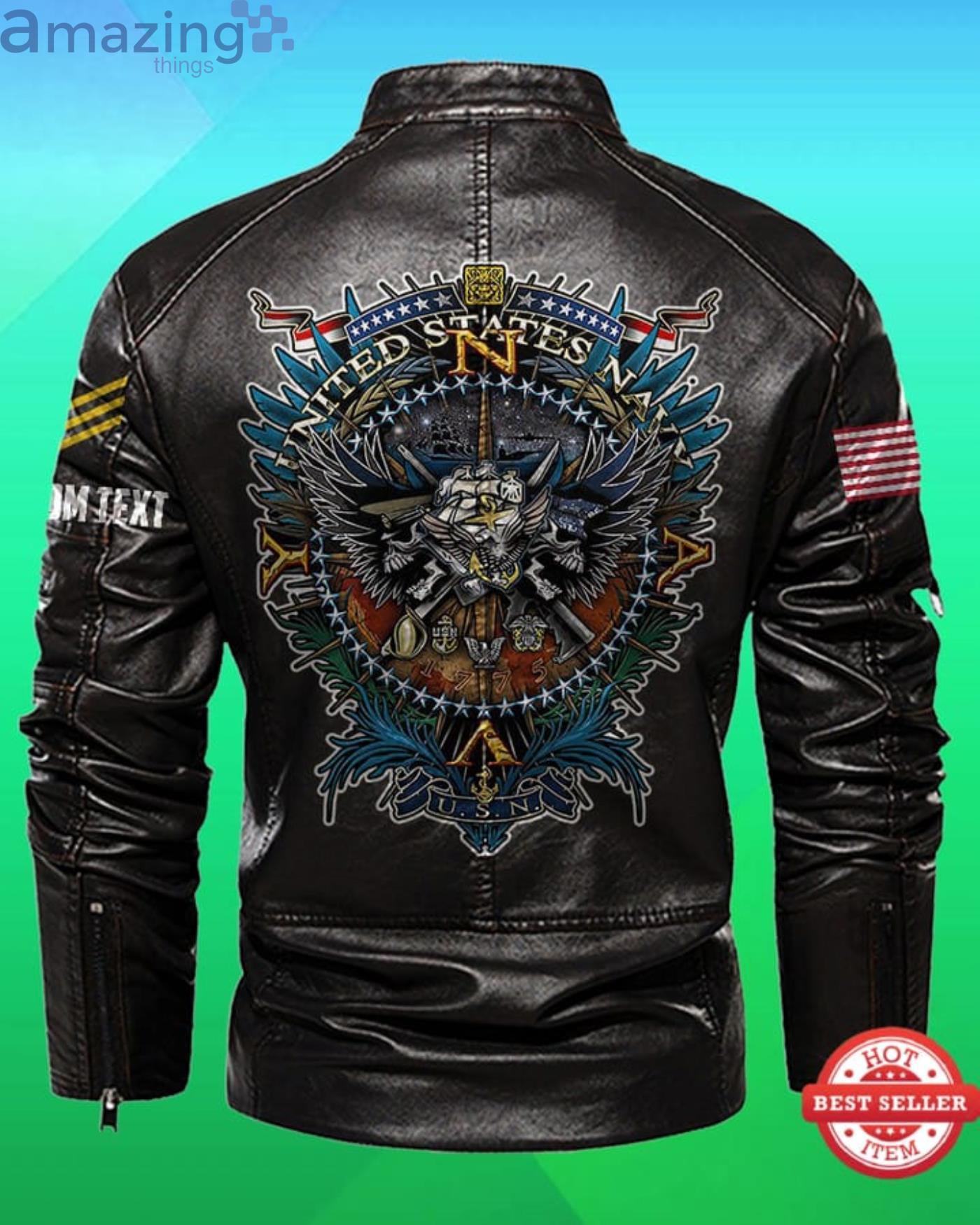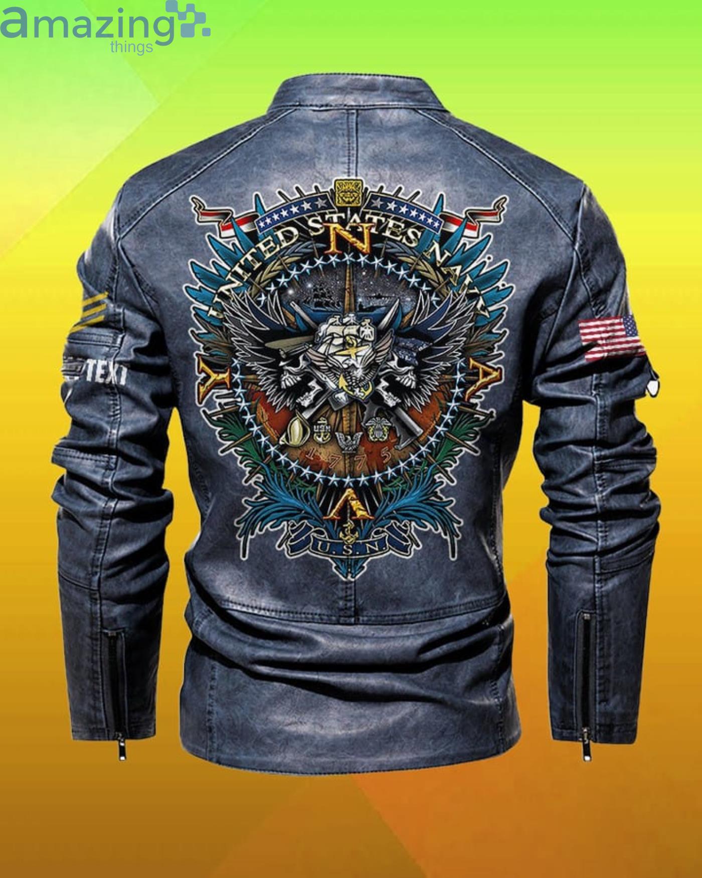 Some of the Usn Veteran Custom Name Stand Collar Leather Jacket photos