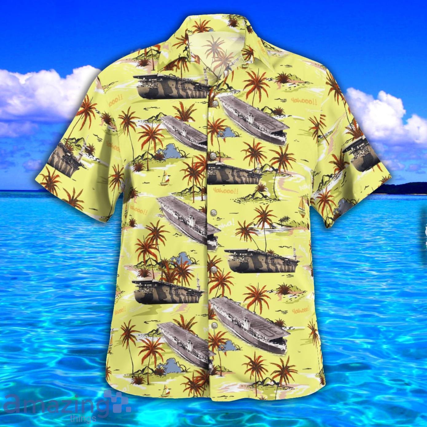 This design is available in a combo Hawaiian shirt & shorts. You can also get it separate. The default option is only one shirt or one pair of shorts. You have chosen a combo to get them both. This combo USS Charger CVE 30 World War II AOP Print Hawaiian Shirt And Short Set is perfect to go to the beach. Get yours now or make a great gift.