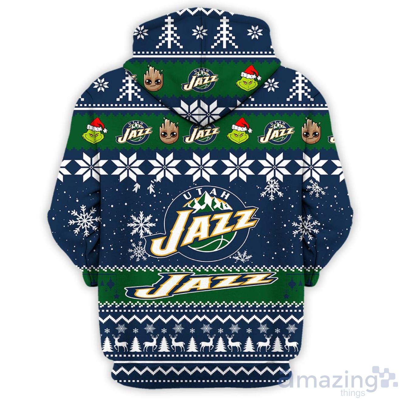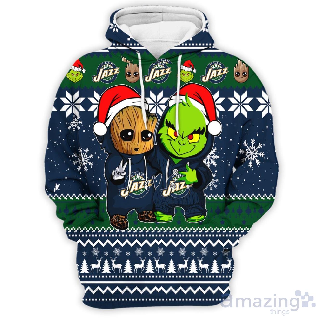 Utah Jazz Baby Groot And Grinch Best Friends 3D Hoodie Christmas Sweater