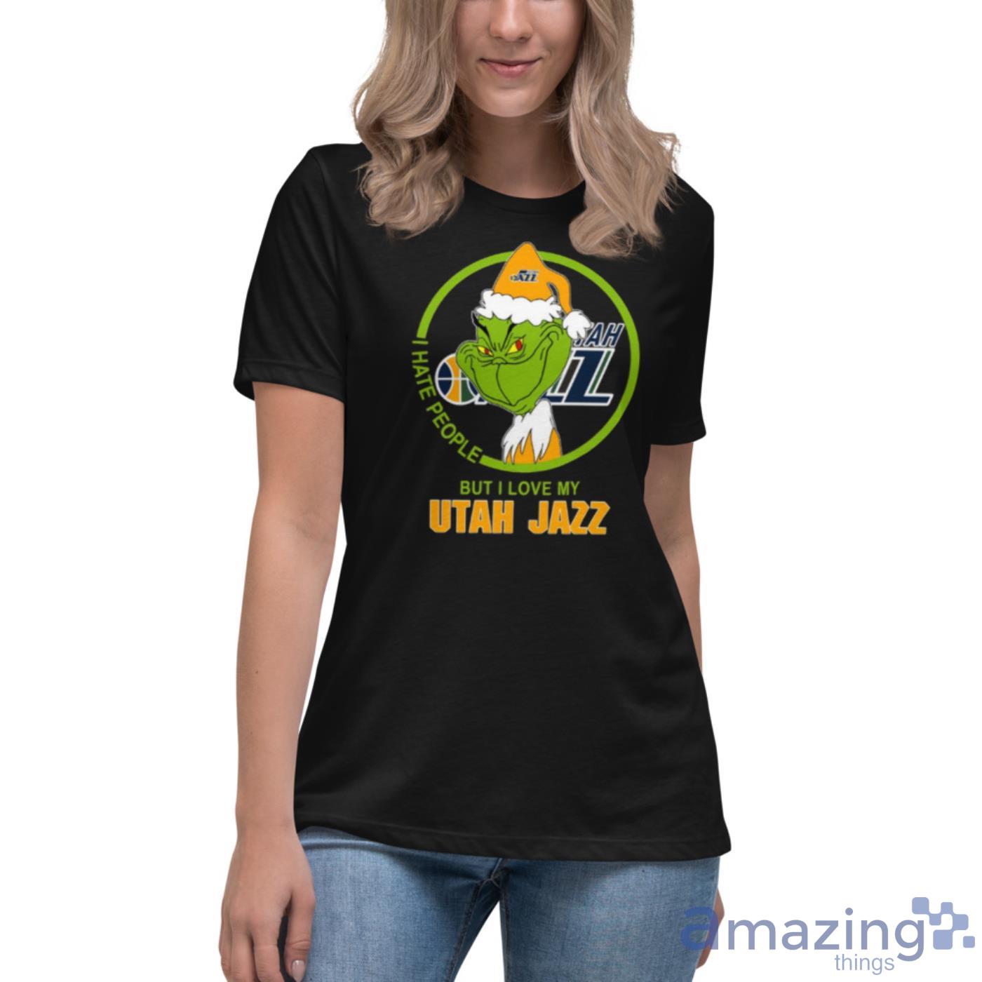Utah Jazz NBA Christmas Grinch I Hate People But I Love My Favorite Basketball Team Shirt Details
