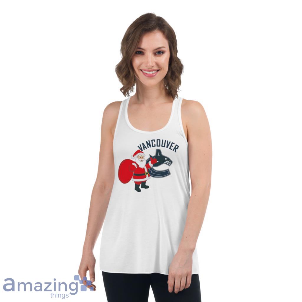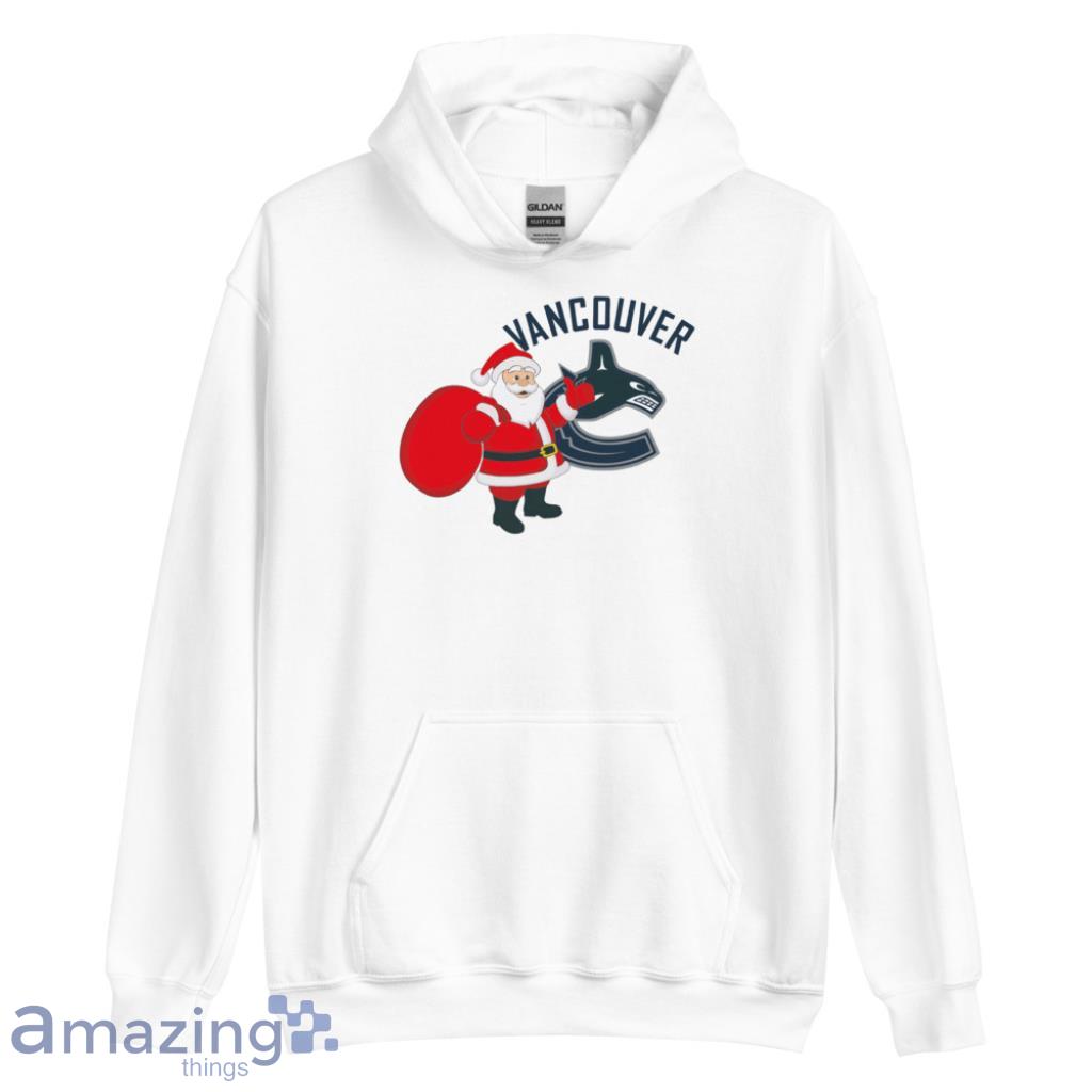 Crafted with the utmost attention to detail, this T-shirt features the iconic Vancouver Canucks logo transformed into a jolly Santa Claus. The vibrant colors and intricate design will make you stand out at any holiday gathering or Canucks game.