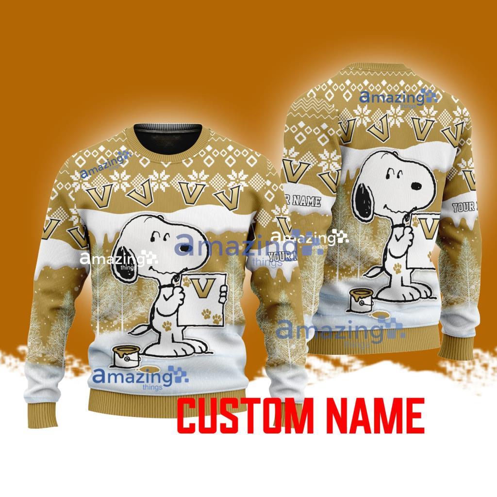 Vanderbilt Commodores NCAA Snoopy Cute Christmas Ugly Sweater 3D Gift For Fans Custom Name Information