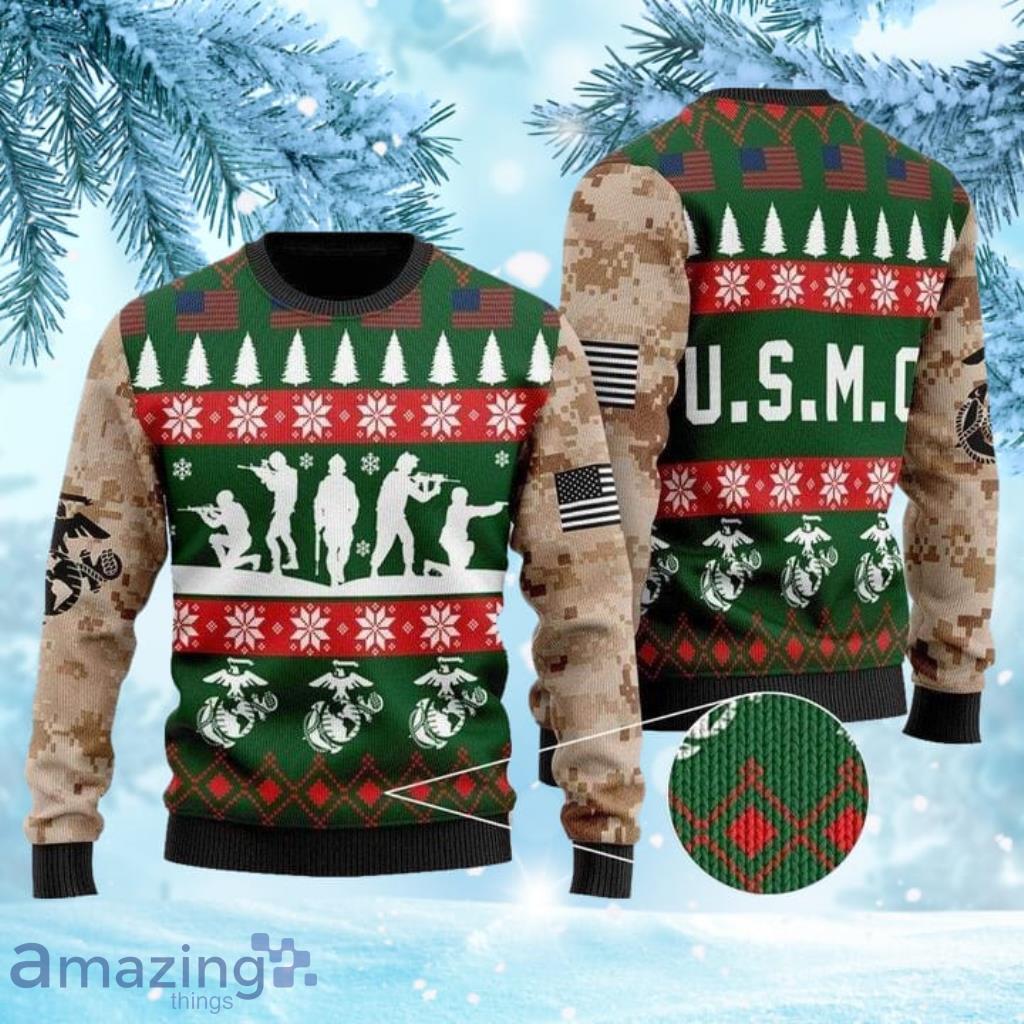 Veteran United States Marine Corps Camo Green Ugly Christmas Sweater 3D Gift Idea Christmas Information