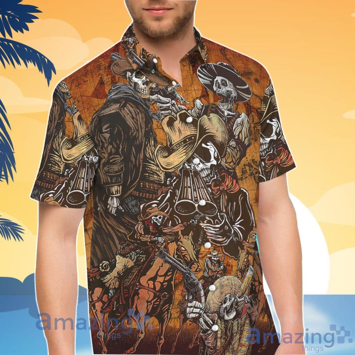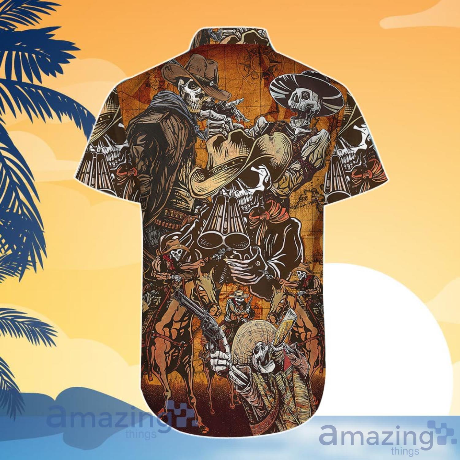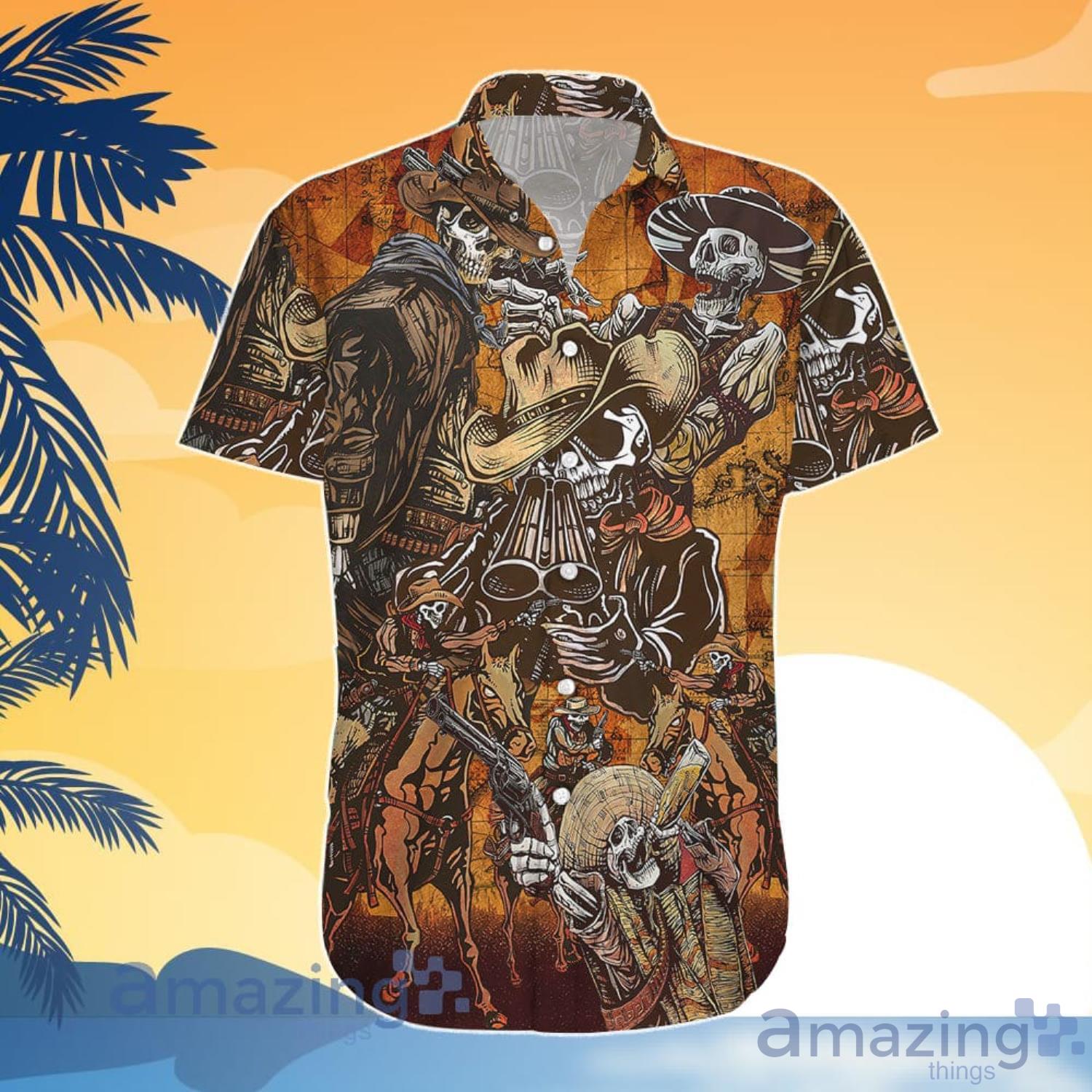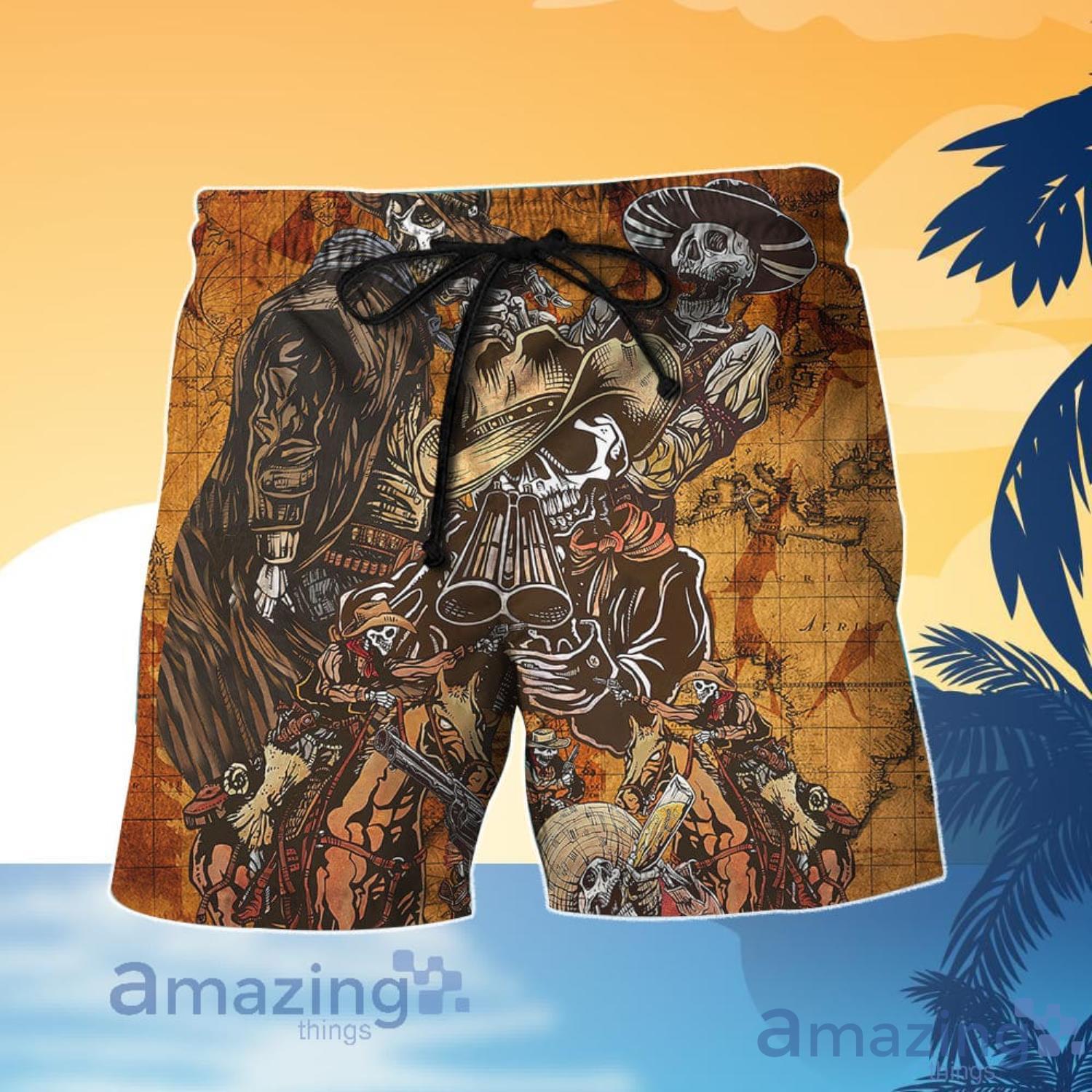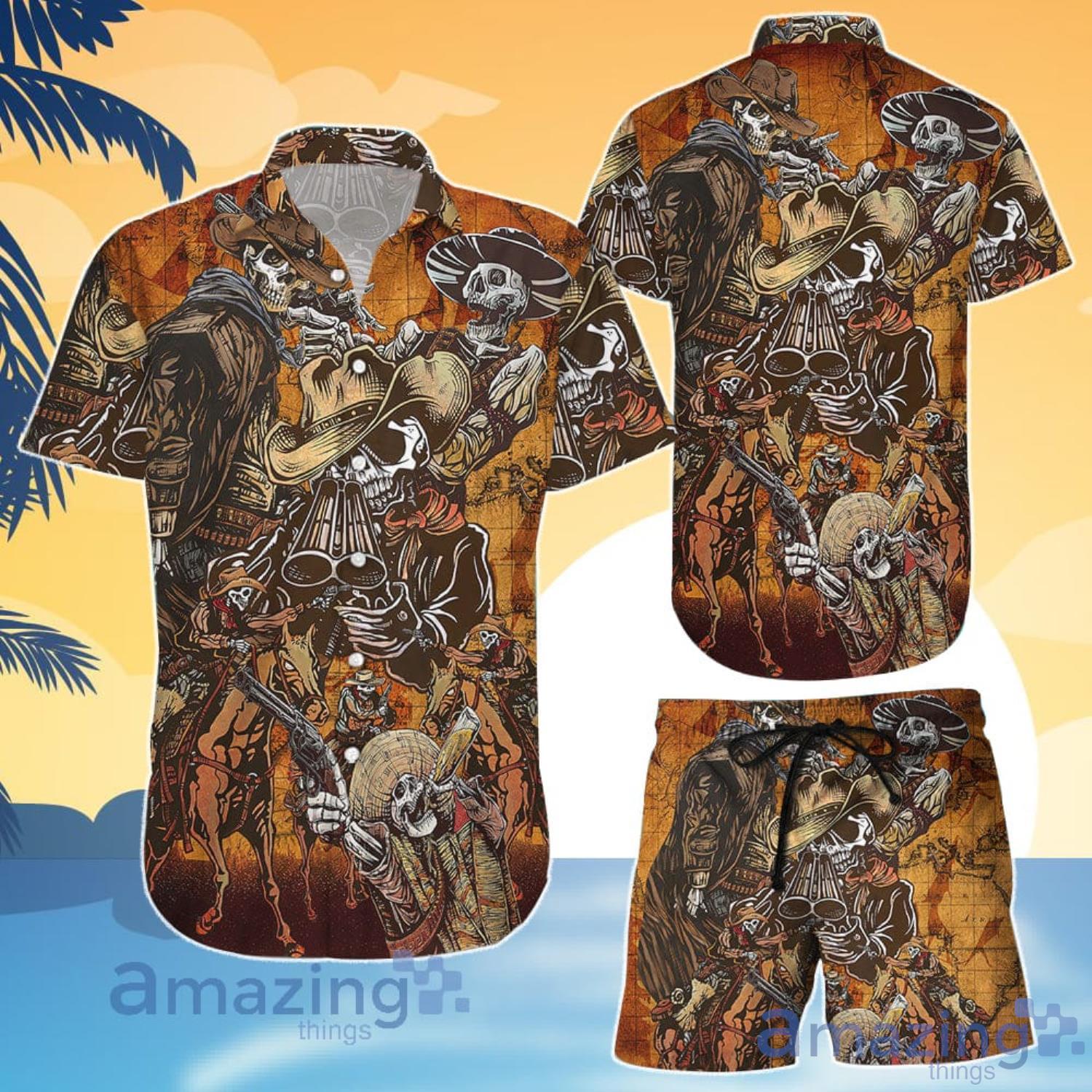 Vintage Cowboy Pirates Skull Map Hawaiian Shirt And Shorts Details: