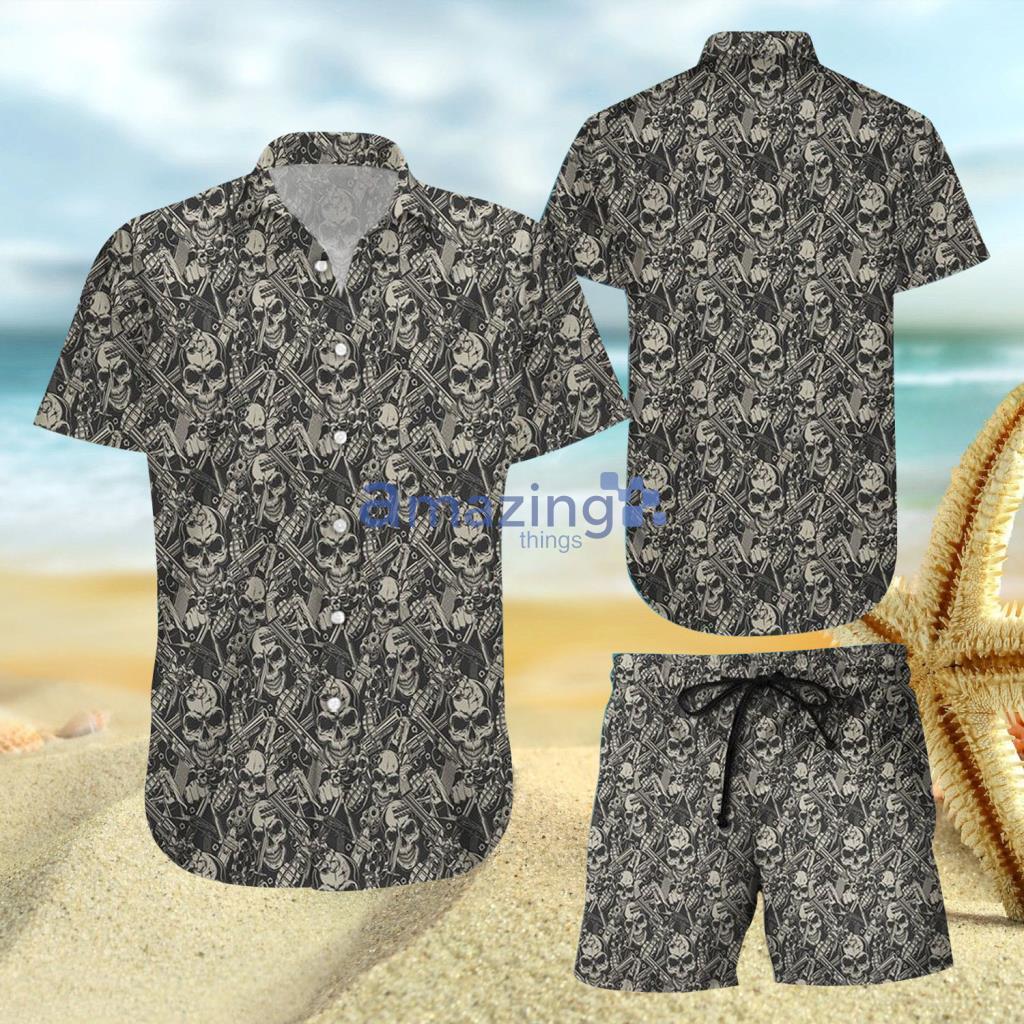 Vintage Skulls With Guns Hawaiian Shirt And Short Details: