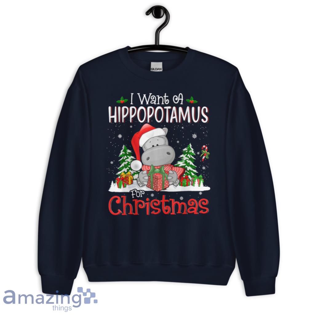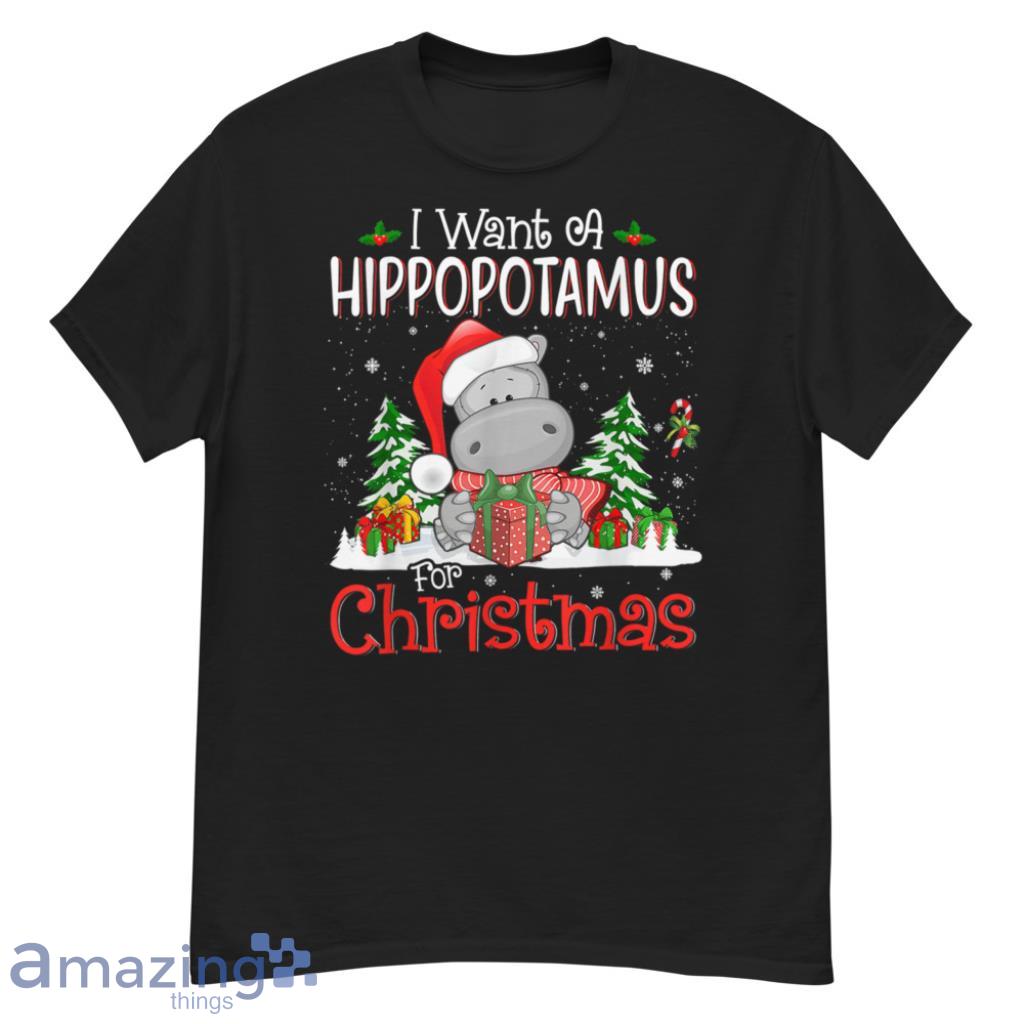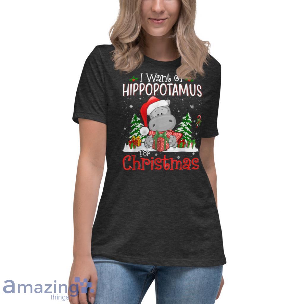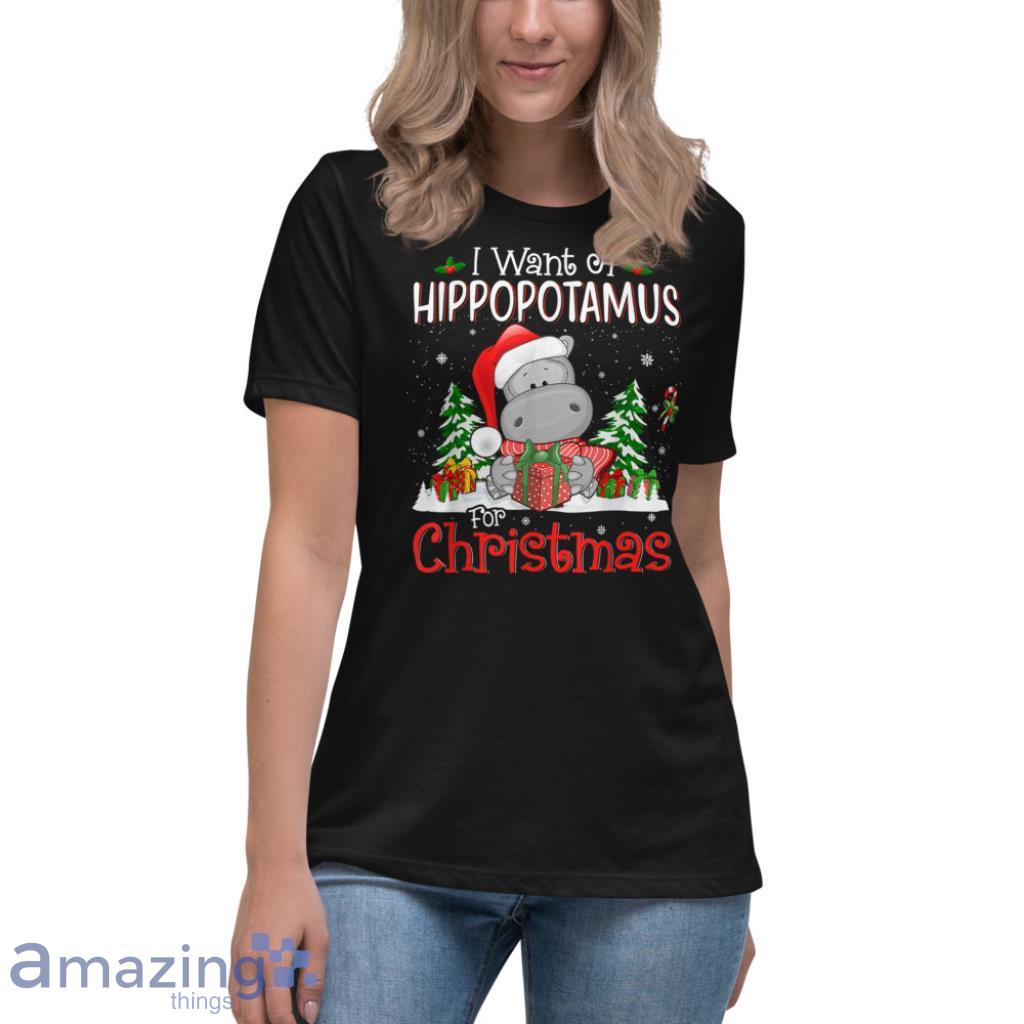Want A Hippopotamus For Christmas Xmas Hippo For Kid Women Christmas Shirt