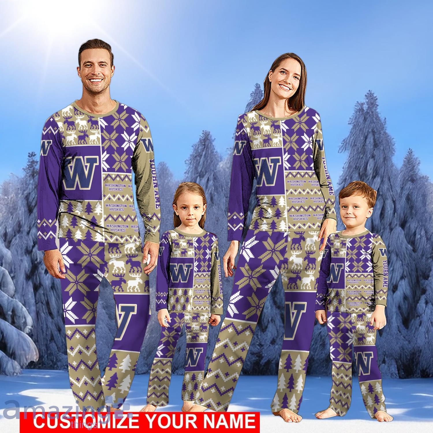 Washington Huskies Pajamas Set Cute Gift Personalized Name For Sport Fans Christmas Pajamas Set Cute Gift For Family Information
