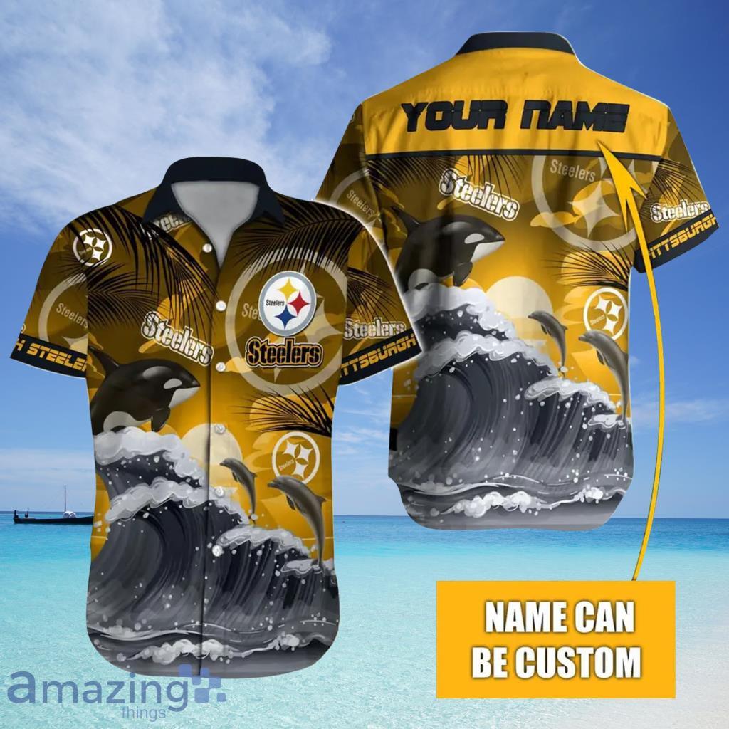 Wave Dolphin Custom Name Pittsburgh Steelers NFL Hawaiian Shirt For Fans Details:
