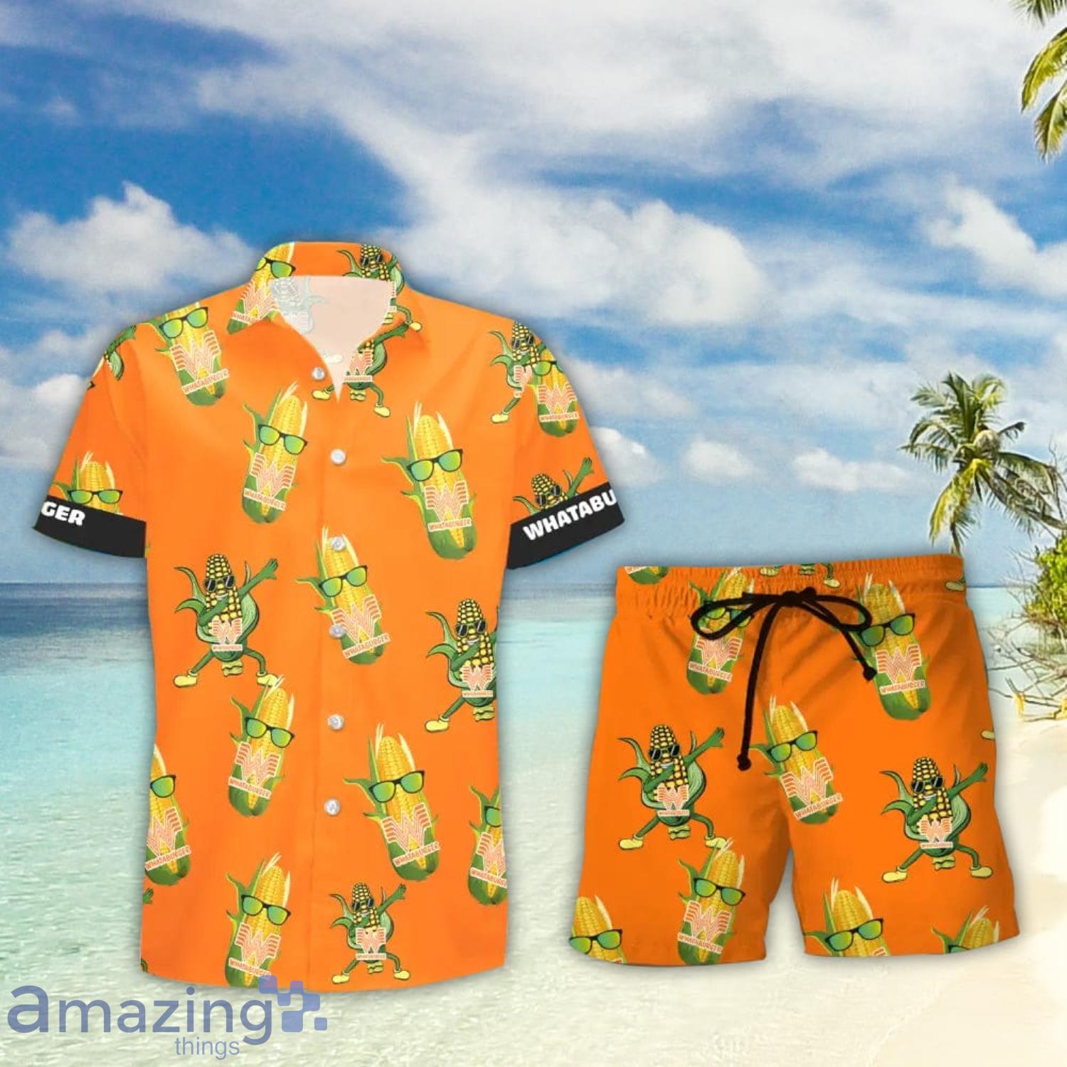 Whataburger Funy Corn Aloha Hawaiian Shirt And Shorts Summer Gift Details: