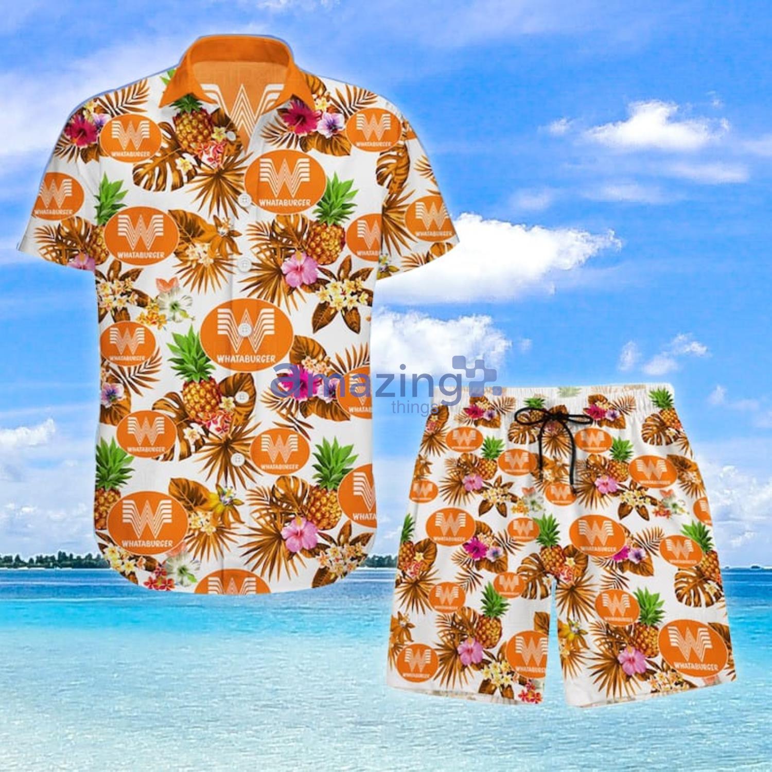 Whataburger Pineapple Tropical Flower Summer Gift Hawaiian Shirt And Shorts Details: