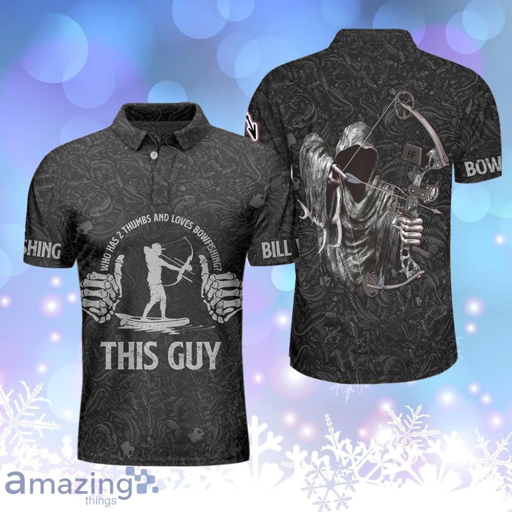 Introducing our exclusive Who Has 2 Thumbs And Loves Bowfishing Personalized Fish Skeleton Pattern Archer Reaper Polo Shirt! Designed for the avid bowfisherman who wants to make a bold fashion statement, this personalized polo shirt is a perfect blend of style and passion.