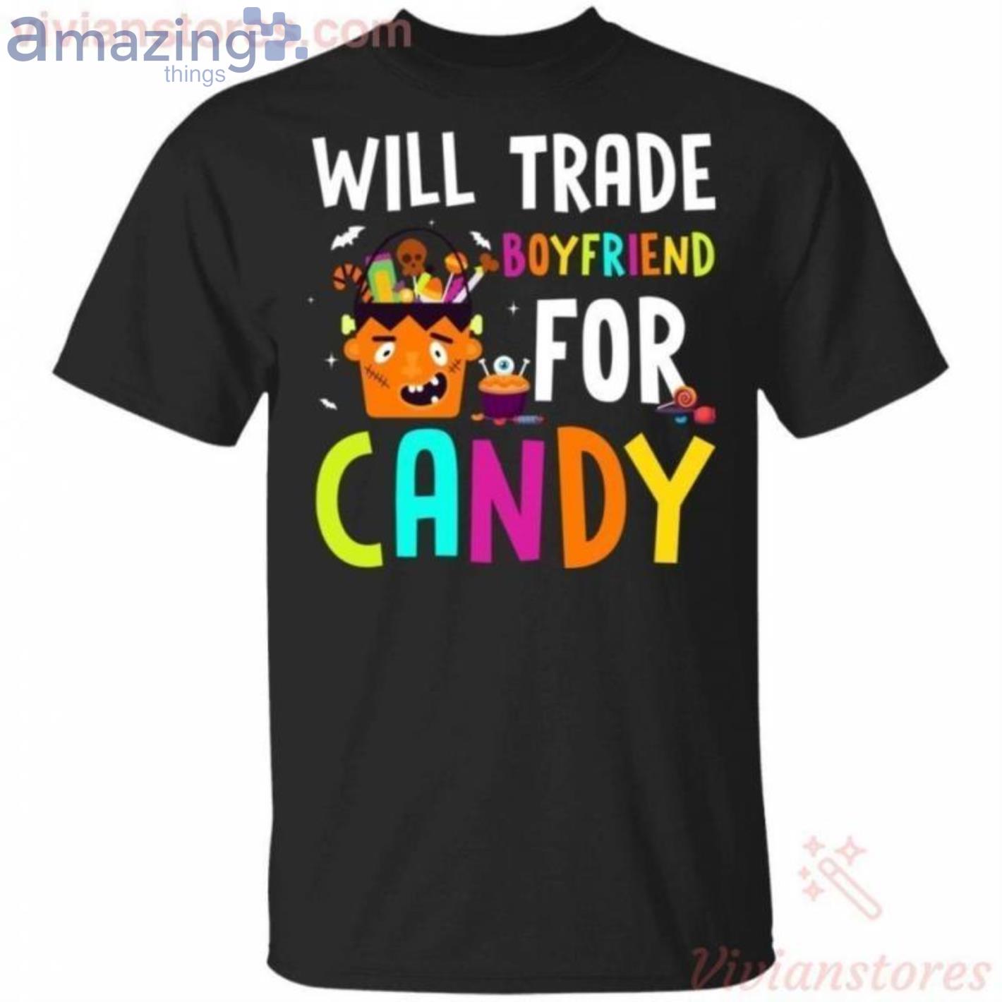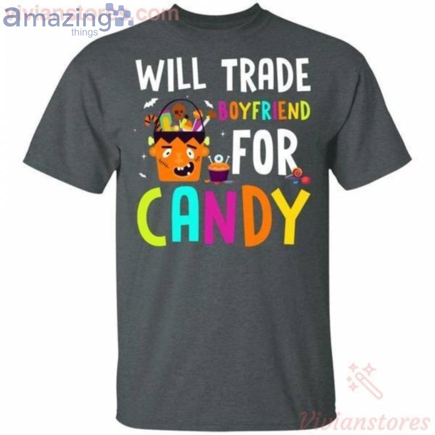 Will Trade Boyfriend For Candy Frankenstein Halloween T-Shirt Details