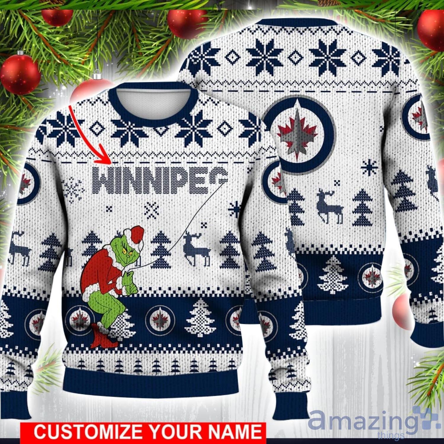 Winnipeg Jets Grinch Ugly Christmas Sweater Ice Hockey NHL Christmas Gift 3D Sweater Custom Name