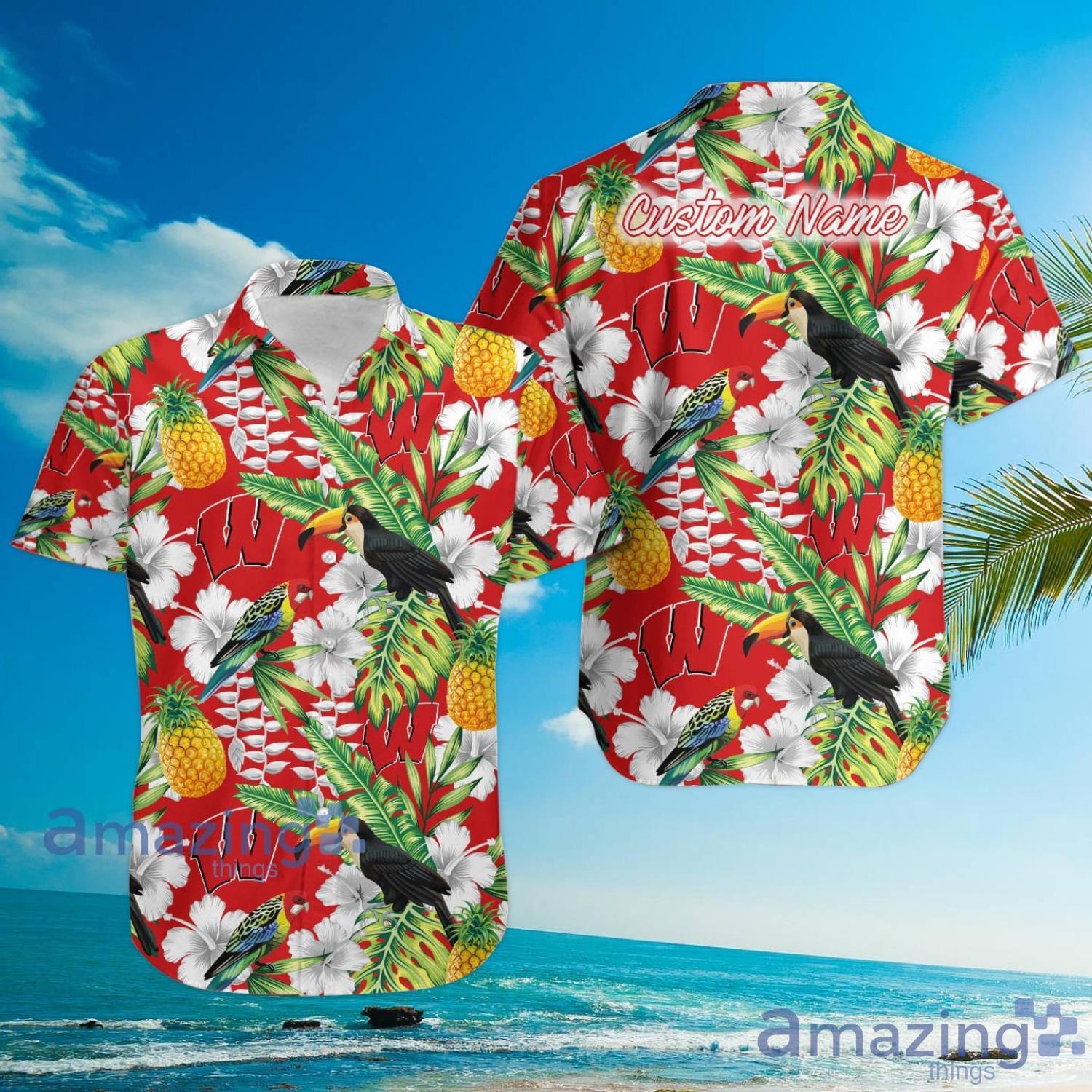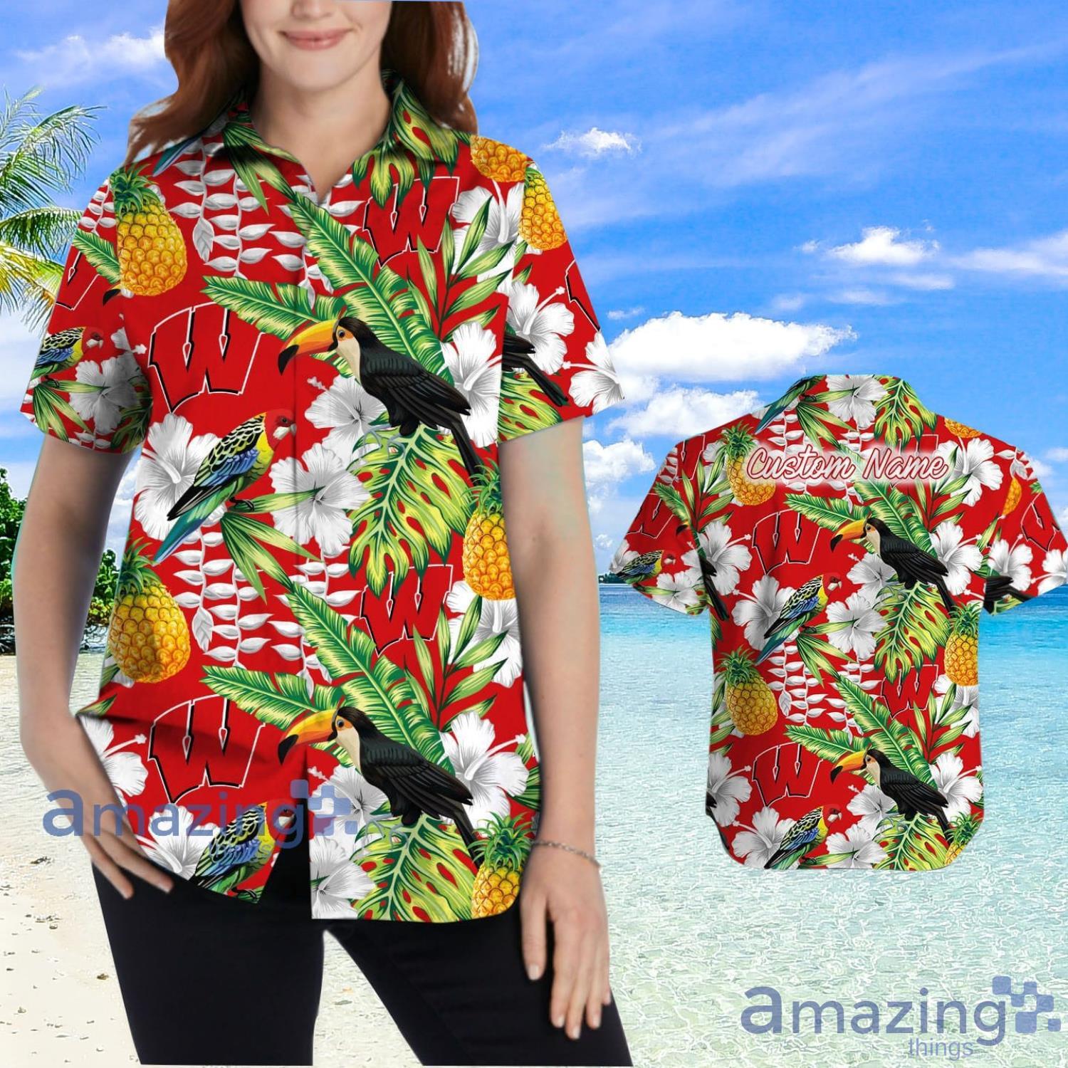 So why wait? Add the Wisconsin Badgers Custom Name Pineapple Parrot Floral Tropical Hawaiian Shirt to your wardrobe today and start turning heads wherever you go!