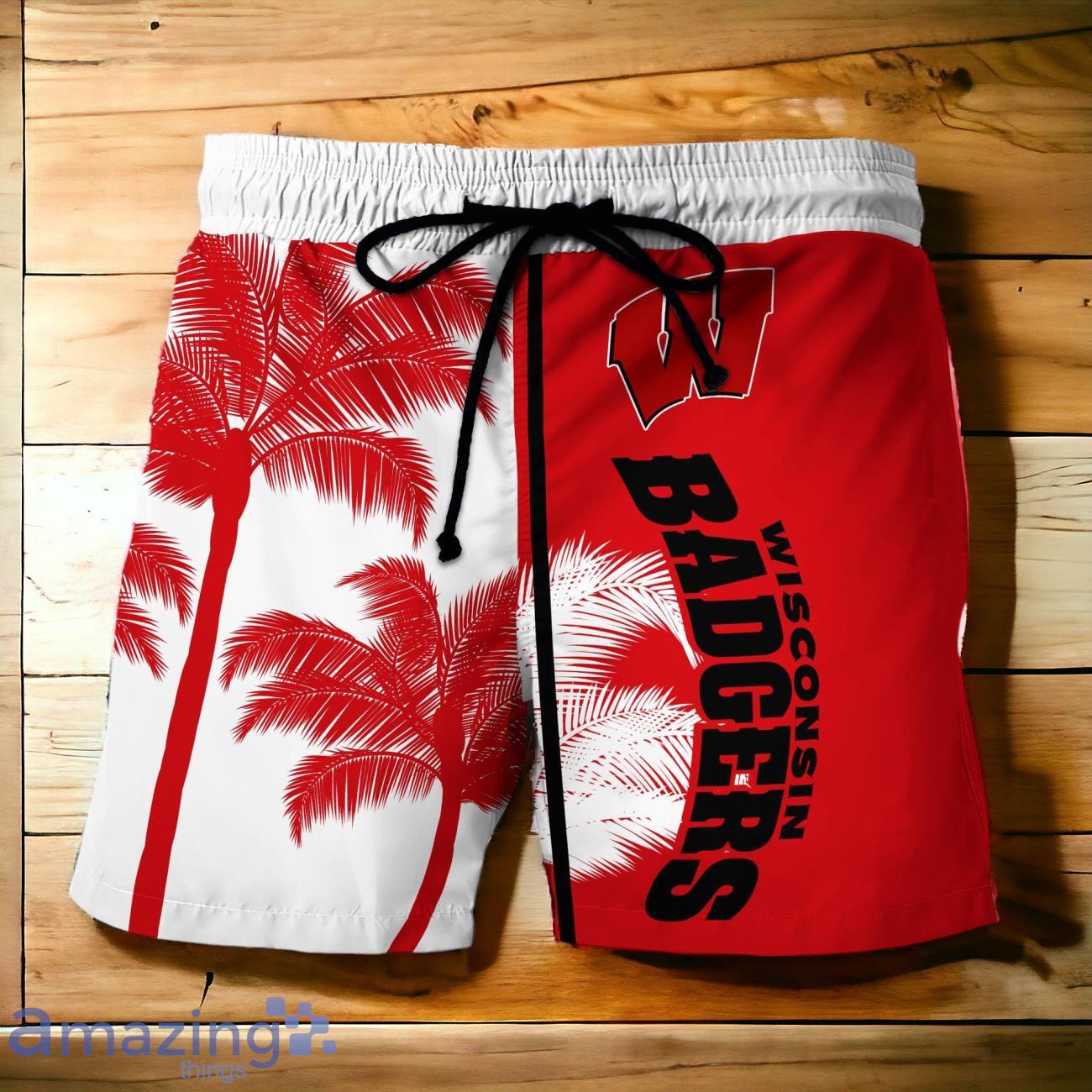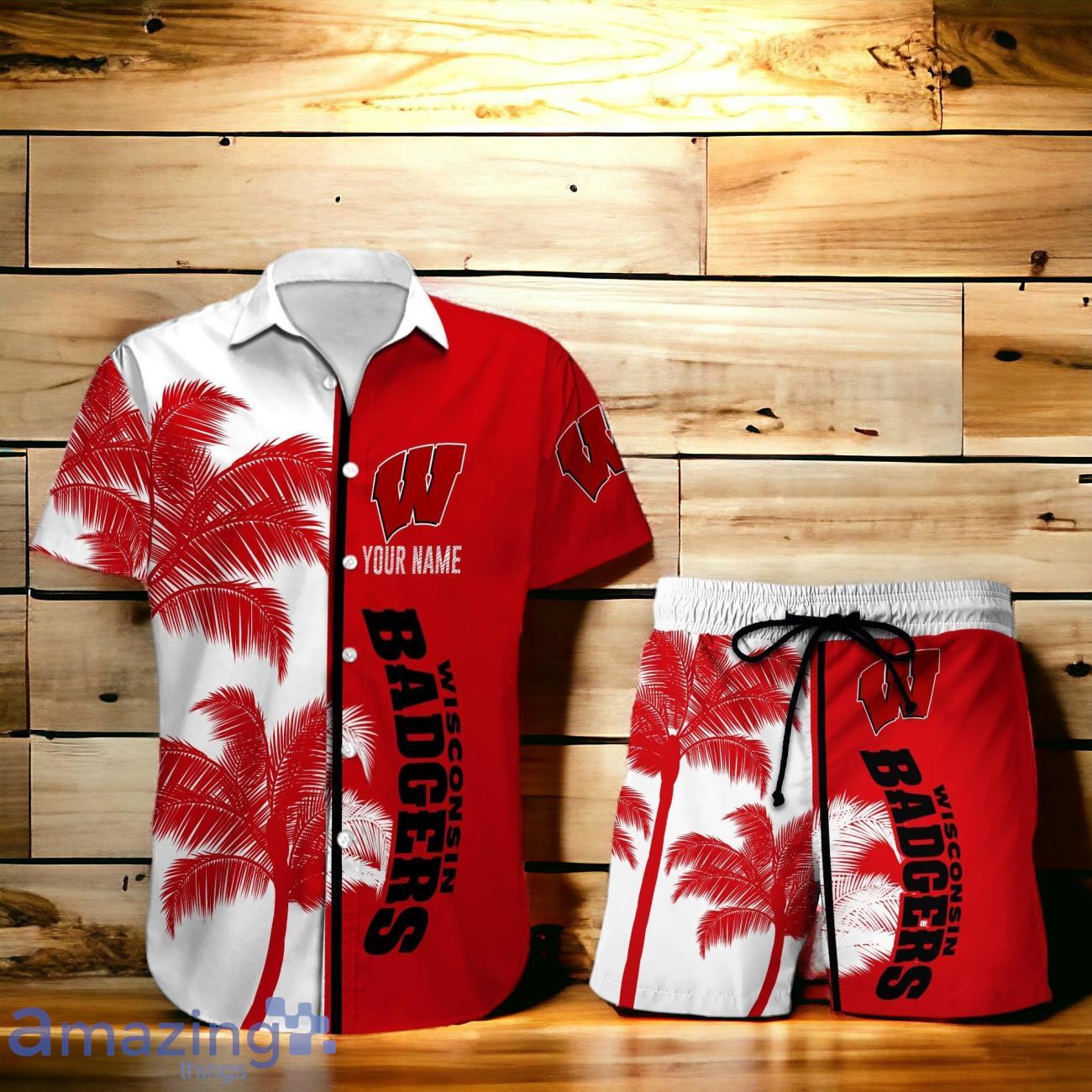 Some of the Wisconsin Badgers Hawaiian Shirt And Short Palm Tree Custom Name photos