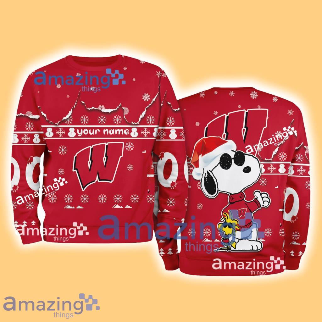Wisconsin Badgers NCAA Snoopy and Woodstock Cute Personalized Number Christmas Ugly Sweater New Gift Limited Edition Information