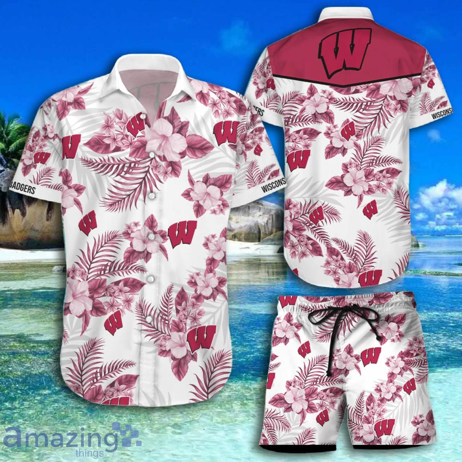 Looking for a way to show your support for the Wisconsin Badgers while also staying cool and comfortable during the warm summer months? Then check out this Wisconsin Badgers Tropical Flowers White Short Sleeve Hawaiian Shirt And Short! Made from a lightweight and breathable material, this shirt is perfect for those hot summer days. The shirt features a white background with tropical flowers in red, black, and white. The flowers are arranged in the shape of the Wisconsin Badgers logo, making this shirt the perfect way to show your team pride. The shirt also features a button-down front, short sleeves, and a relaxed fit. Whether you’re tailgating before the big game or just hanging out with friends, this shirt is sure to show your Wisconsin Badgers spirit.