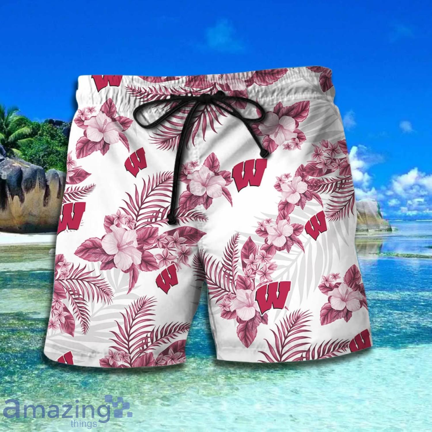 Wisconsin Badgers Tropical Flowers White Short Sleeve Hawaiian Shirt And Short Details: