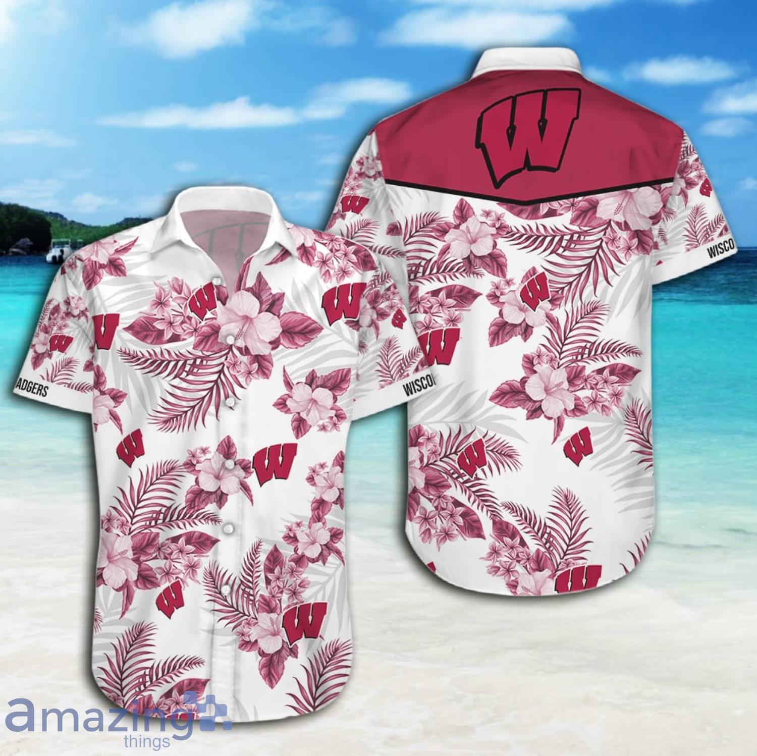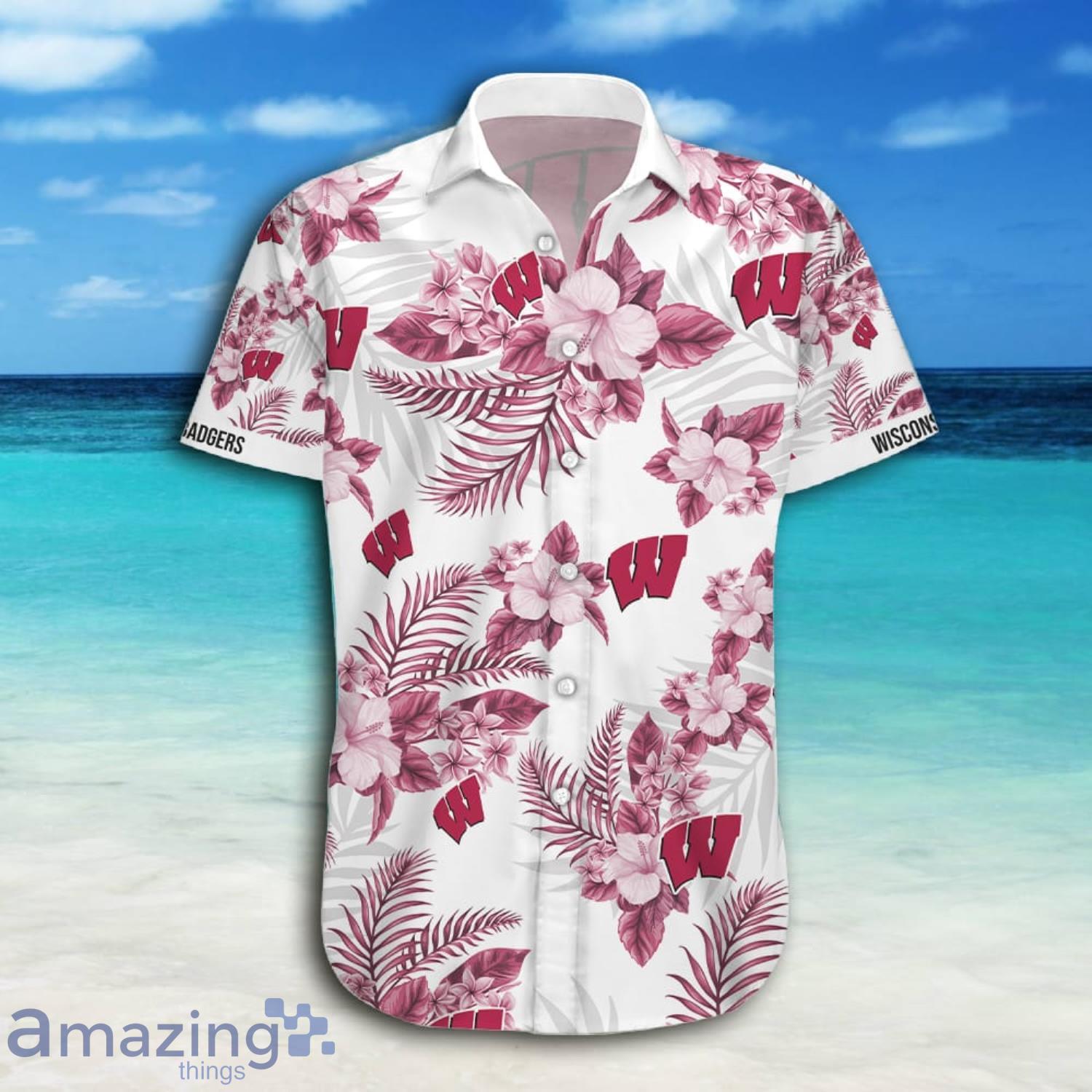 This design is available in a combo Hawaiian shirt & shorts. You can also get it separate. The default option is only one shirt or one pair of shorts. You have chosen a combo to get them both. This combo Wisconsin Badgers Tropical Flowers White Short Sleeve Hawaiian Shirt And Short is perfect to go to the beach. Get yours now or make a great gift.