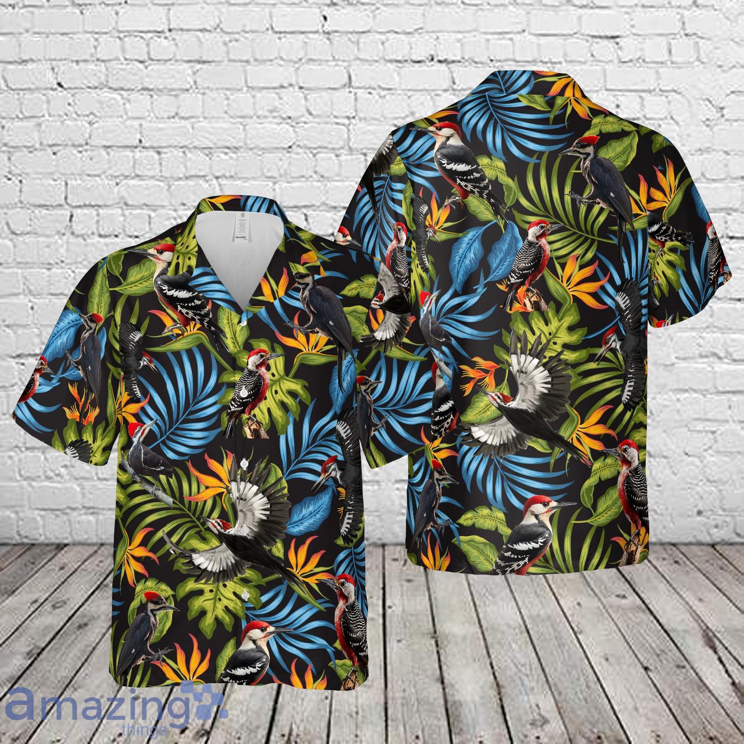 Woodpecker Bird Tropical Hawaiian Shirt Details: