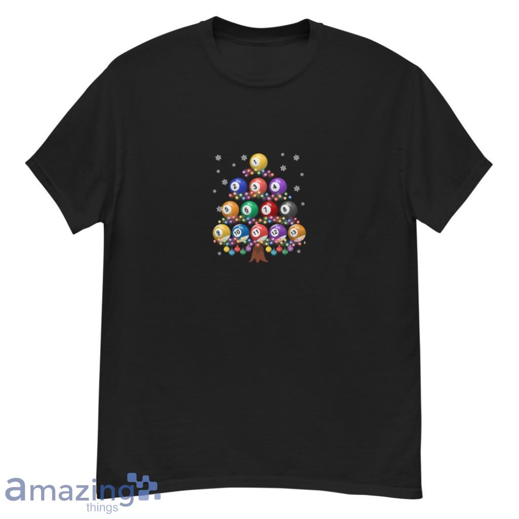 Xmas Tree Lights Santa Billiards Christmas Shirt Details