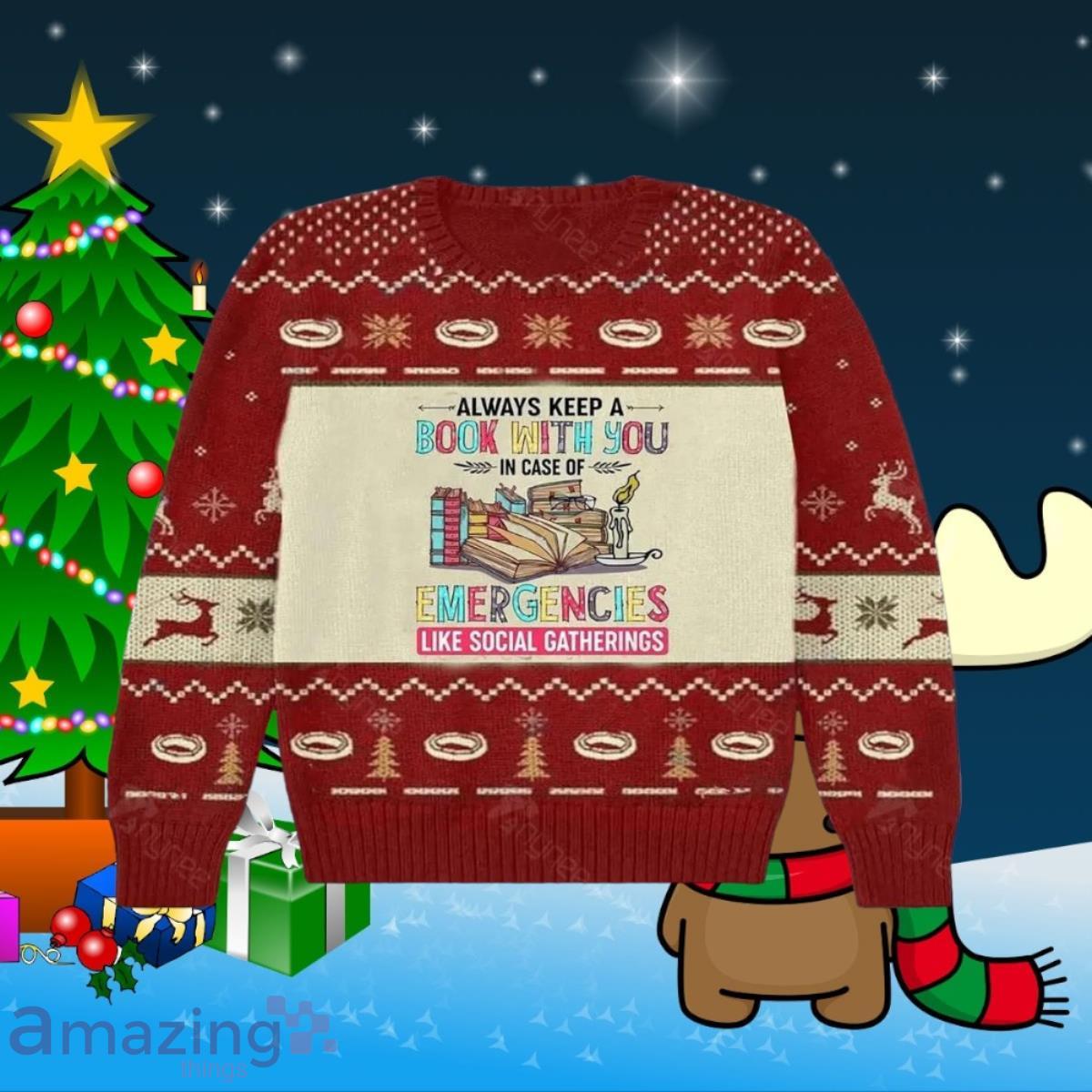 Some of the You In Case Of Emergencies Like Social Gatherings Books Ugly Christmas Sweater Style Gift For Men And Women photos