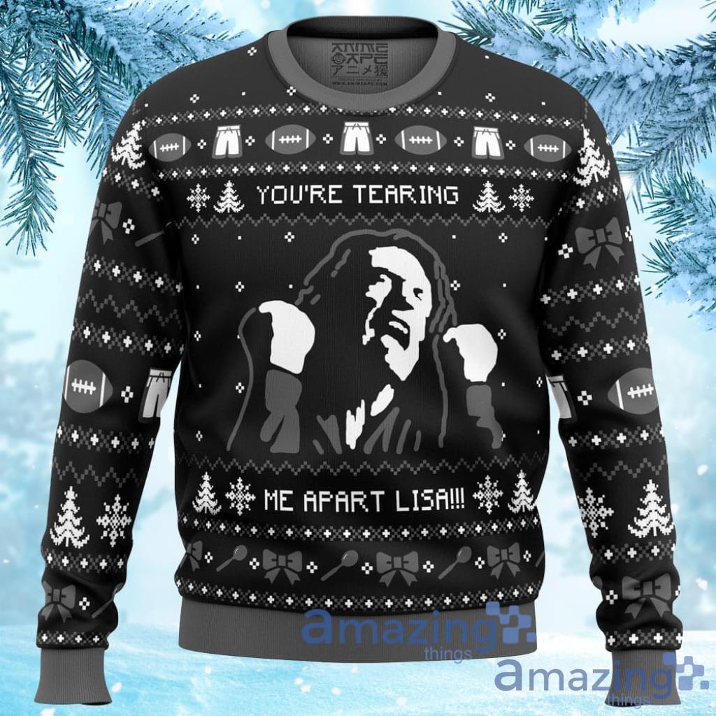 Whether you’re attending an ugly sweater party or simply want to stand out this holiday season, the “You’re Tearing Me Apart Lisa The Room Ugly Christmas Sweater 3D Gift For Men And Women” is the perfect choice. So grab yours today and let the festivities begin!